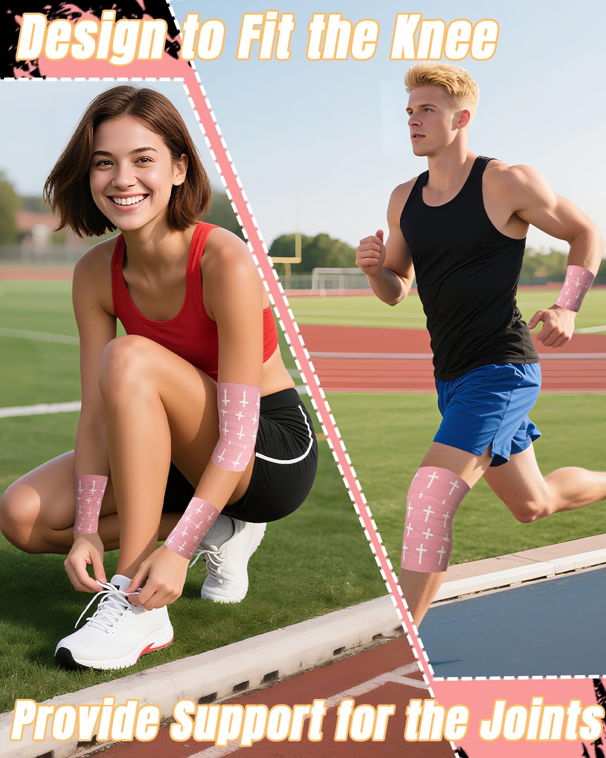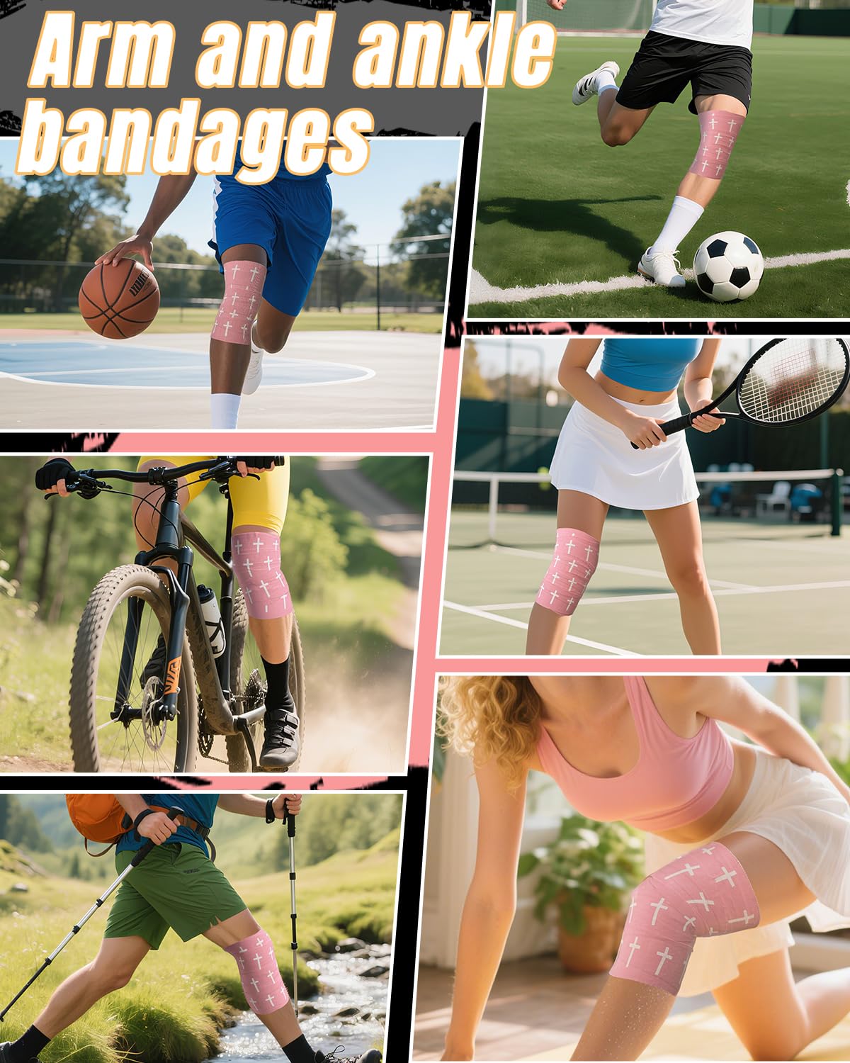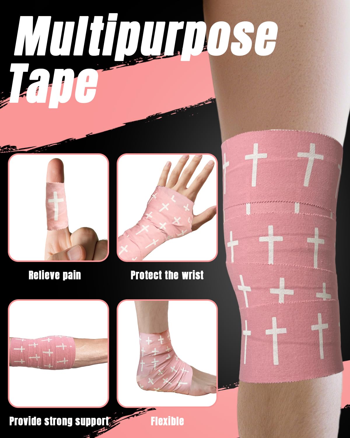 2 Pcs Cross Tape Christian Athletic Tapes Religious Sport Soccer Wrist Tape Cross Pink Tapes for Soccer Football Baseball Gymnastics Boxing Christian Church Gifts Tennis 2IN X 23FT