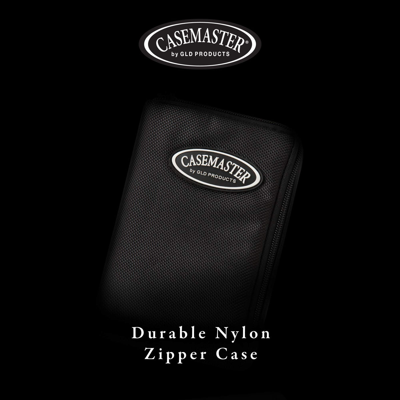 The most portable version of the Casemaster dart storage system is here with the Casemaster Select Three Dart Nylon Dart Case! Constructed from tenacious nylon fibers woven around a hard resin shell, the Select combines both enduring strength of materials with easy-to-carry portability for a complete package. The Select packs enough storage to suit the most serious darters. The prized possession of any darter is their darts, and the Select can store three of them, a complete set! Each dart is locked into place with a solid foam insert to prevent the darts from moving, which could cause breakage. With plenty of space at either end of the case, you won’t have to fold down your flights, leading to longer lifespans and a truer flight path. Both steel tip darts and soft tip darts will fit nicely into this stylish case. In addition to dart storage, the Select can hold an plenty of extra dart supplies to keep you on target and your darts in top form. With six pockets for extra flights and shafts, you’ll never be without replacements. The piece that truly sets the Casemaster Select apart is the plastic accessory storage tube, with a separate lid, to sort out your spare tips and any other smaller accessories you need to bring out to darting events. Finally, this great looking durable case is backed by GLD Products’ 90 day guarantee, should something go wrong. Choose from one of three colors to best complement your style: black, blue or pink.