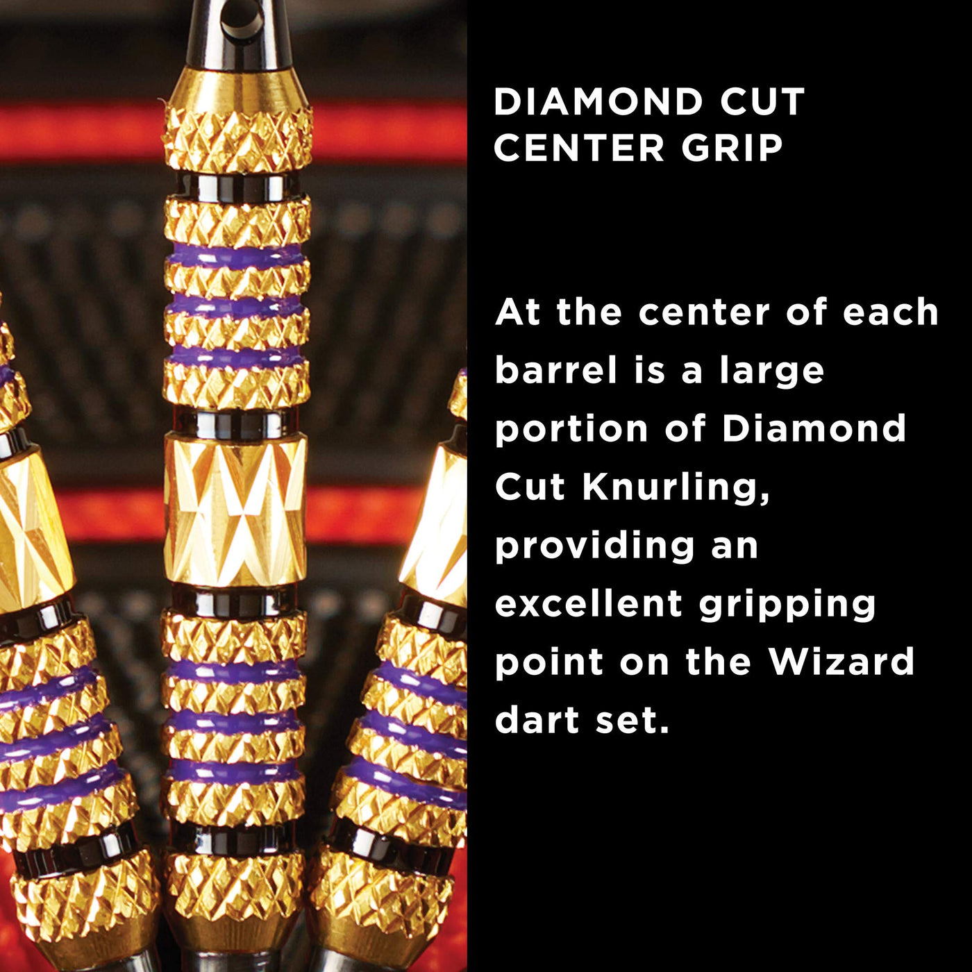 The Viper Wizard soft tip darts are designed with high quality brass barrels which offer exceptional balance and styling in a slim profile. Having a slim profile dart barrel is necessary to obtain a closer grouping of darts to maximizing scoring. Intended for use with electronic dartboards and are ideal for casual-to-intermediate level players. Each barrel has strategically placed knurled bands, deep grooves and rings that make excellent gripping points and encourages consistent hand placement. Viper Wizard darts are equipped with heavy-duty, lightweight aluminum shafts with locking holes that allow for a tighter fitting to the barrel, improving stability and greatly reducing the need to retighten during play. Quality flights help increase speed and reduce drag, producing a consistent flight path for pinpoint accuracy; detailed graphics are prominently displayed for added flare. They feature 2BA Tufflex Tips II soft tip dart points that have a reinforced cone, making them extremely strong and durable. Simply twist for a tight, secure fitting and easy removal. The barrels are compatible with all 2BA sized corkscrew thread dart points. These darts include an additional set of convex nylon shafts, flights, 2BA dart points and a dart mechanic wrench. The Viper Wizard darts and accessories are fashionably stored and protected in the hard-shell slider case.