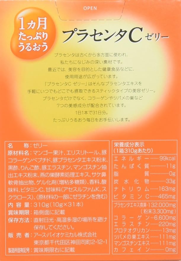 Ingredients: Mango juice, erythritol, pork collagen peptide, pig placenta extract powder , black vinegar, apple vinegar, pig elastin, mangostein extract powder, golden nest enzyme treatment extract, salmon nose cartilage extract, gelling agent (polysaccharide thickener), acidulant, flavoring, vitamin C, sweetener (acesulfalphalphalphasulfasulfalphalphasulin. Muk K, Sucraro su) ( some of the raw materials contain gelatin
