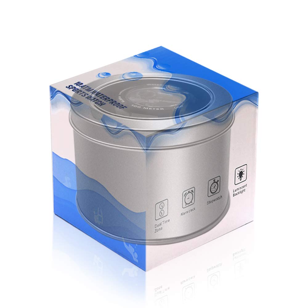 Key Features: - 10 ATM waterproof, can work or be operated up to 100m underwater, suitable for swimming, snorkeling, scuba diving or other water activities. - This watch has pedometer function which could record distance, walking time, calories consumed. - This watch also have lap stopwatch and alarm clock functions. - 12/24 hour format selectable. - Precise hour, minute, second, date, month and day display. - Positive electro luminescent backlights built-in. - Support shock resistant. - Attached with a comfortable soft TPU wristband. Parameters: Time Accuracy: ±30 seconds per month Dive Maximum Operating Depth: 100m (10 ATM) Watch Shape: Round Movement: Digital Battery Code: CR2025 Operating Battery Life Time: 1.5 to 2 years Dial Window Material: PMAA High Transparency Resin Watch Case Material: ABS Plastic Dial Color: Silver+Black Case Diameter: 43 mm Case Thickness: 12 mm Watchband Material: TPU Band Band Color: Black Clasp: Pin Buckle Band Width: 22mm Maximum Wrist Circumference: 225mm Minimum Wrist Circumference: 135mm Product Weight: 46g Package Weight: 200gNote: The battery can be replaced. If you find that the watch is not working or the text on the display is not clear, please replace the watch battery in time.