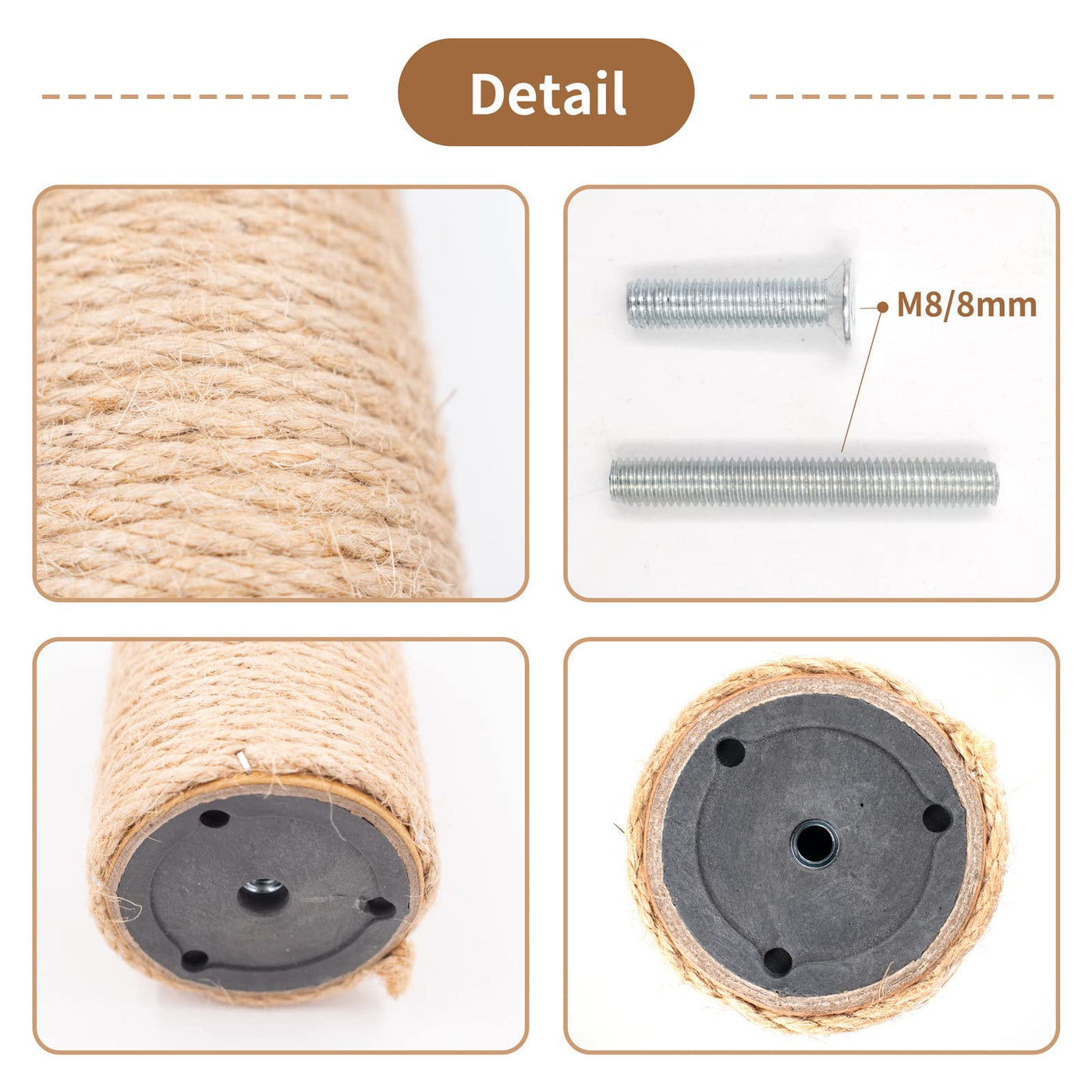 - Easy to Use: Cat scratching stakes are suitable for screws with a diameter of 8mm (M8). If your cat tree or scratching nails use this type of screw, then you can choose our replacement poles. Instead of buying rope and wrapping it yourself, our products not only wrap tighter and save time.