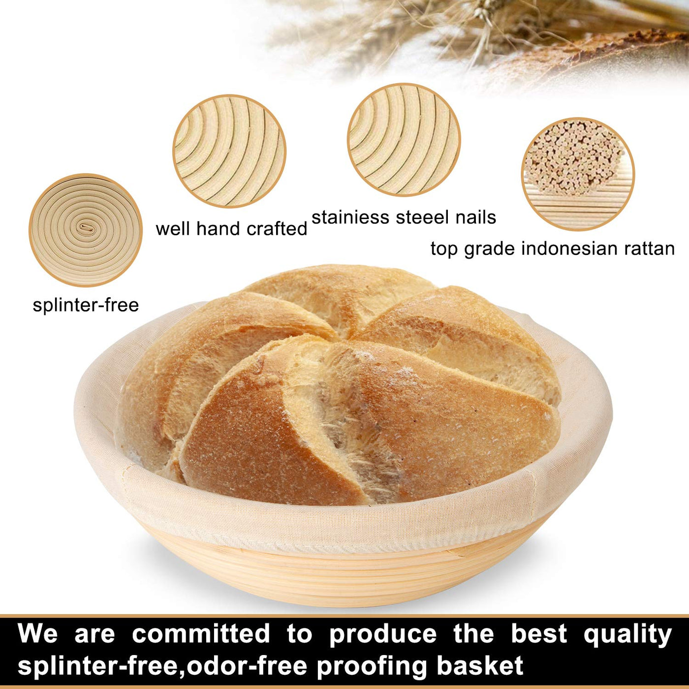 10 inch Round Banneton Bread Proofing Basket Set of 2PCS Bread Dough Proofing Rising Rattan Basket & Liner for Baking Bread Making
