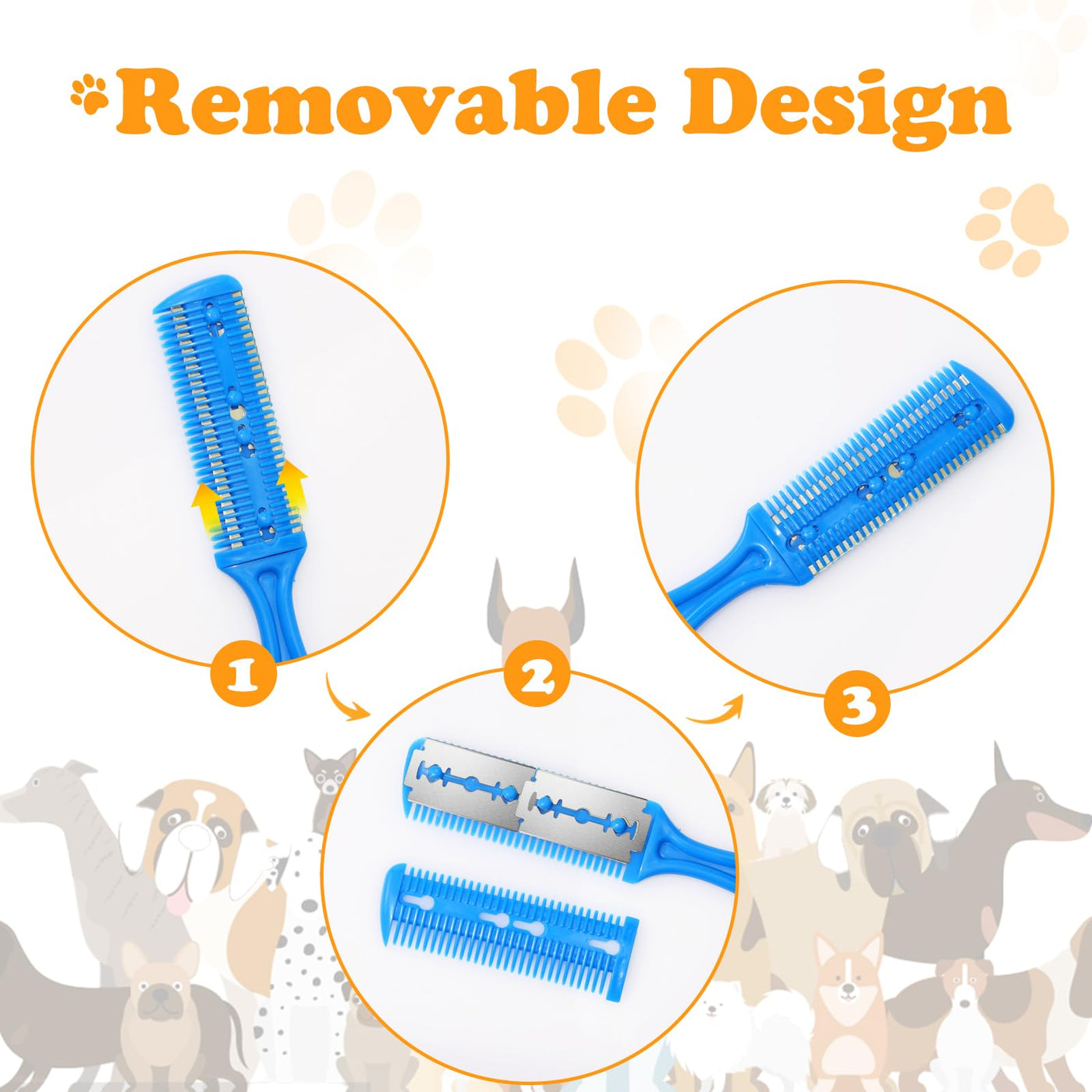 - Long-lastingWe value longevity, which is why our package includes 1pc of pet razor combs and 10pcs of replacement razors. These corrosion and wear-resistant blades ensure a prolonged lifespan for the comb, meeting your pet's daily grooming needs effortlessly.