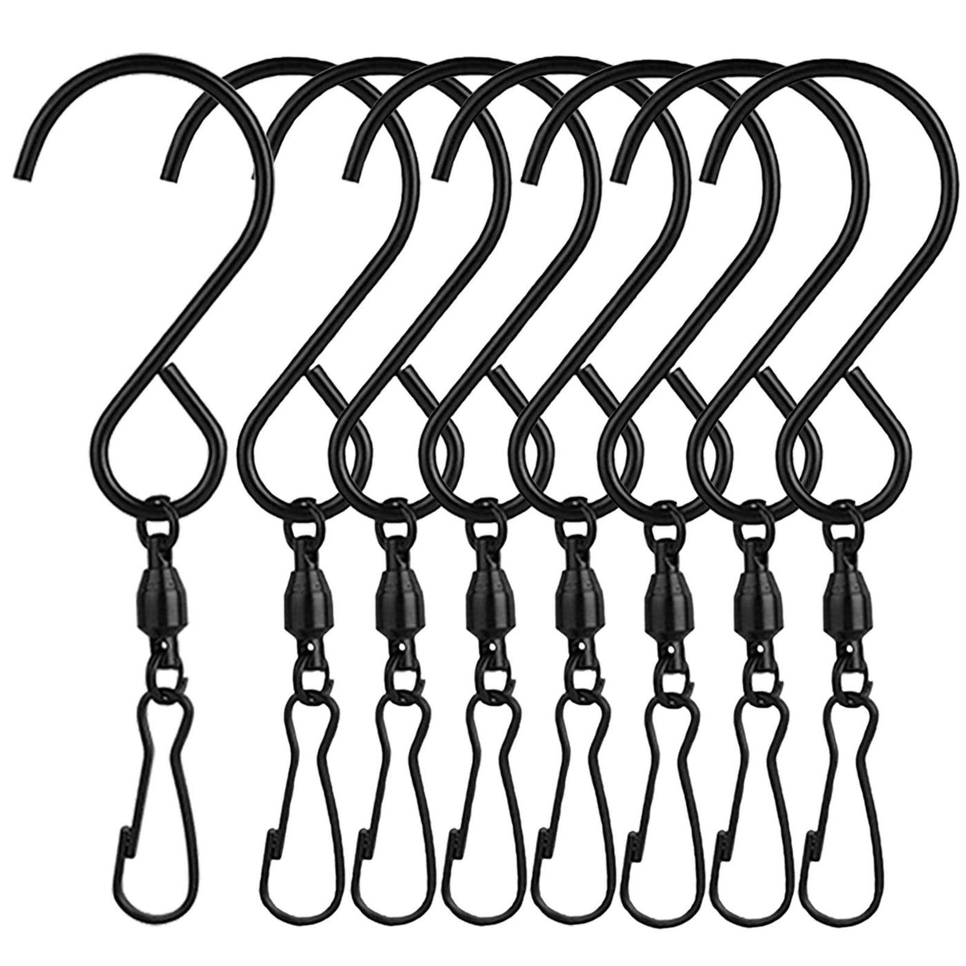 AMZSEVEN 8 Pack Swivel Hooks Clips for Hanging Wind Spinners, Wind Chimes, Bird Feeder, Crystal Twisters Party Supplies (Black)