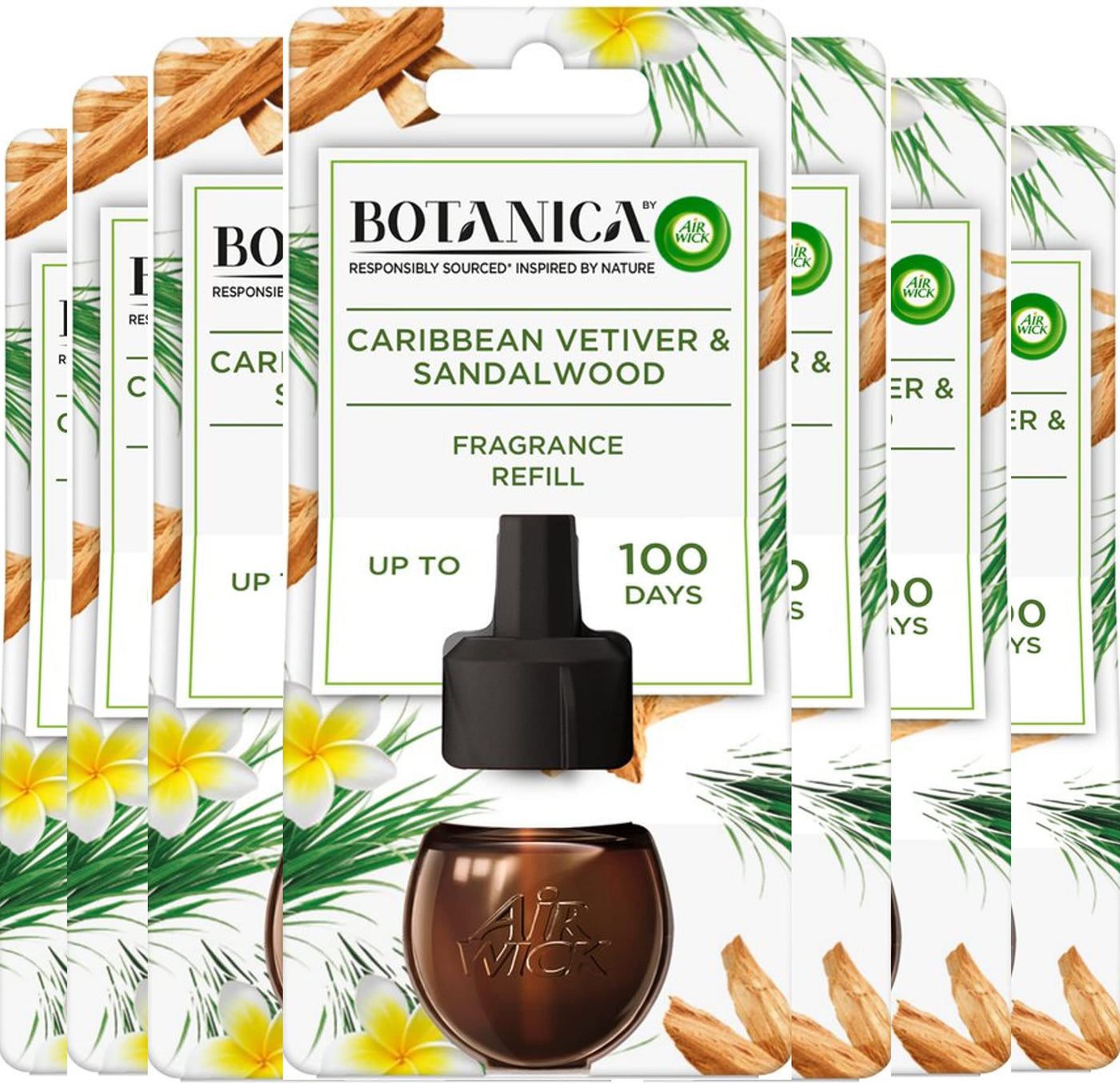 Botanica by Air Wick Scented Oil for Electrical Plug Diffuser Caribbean Vetiver and Sandalwood Refill x7, 19 ml 1 Count (Pack of 7)