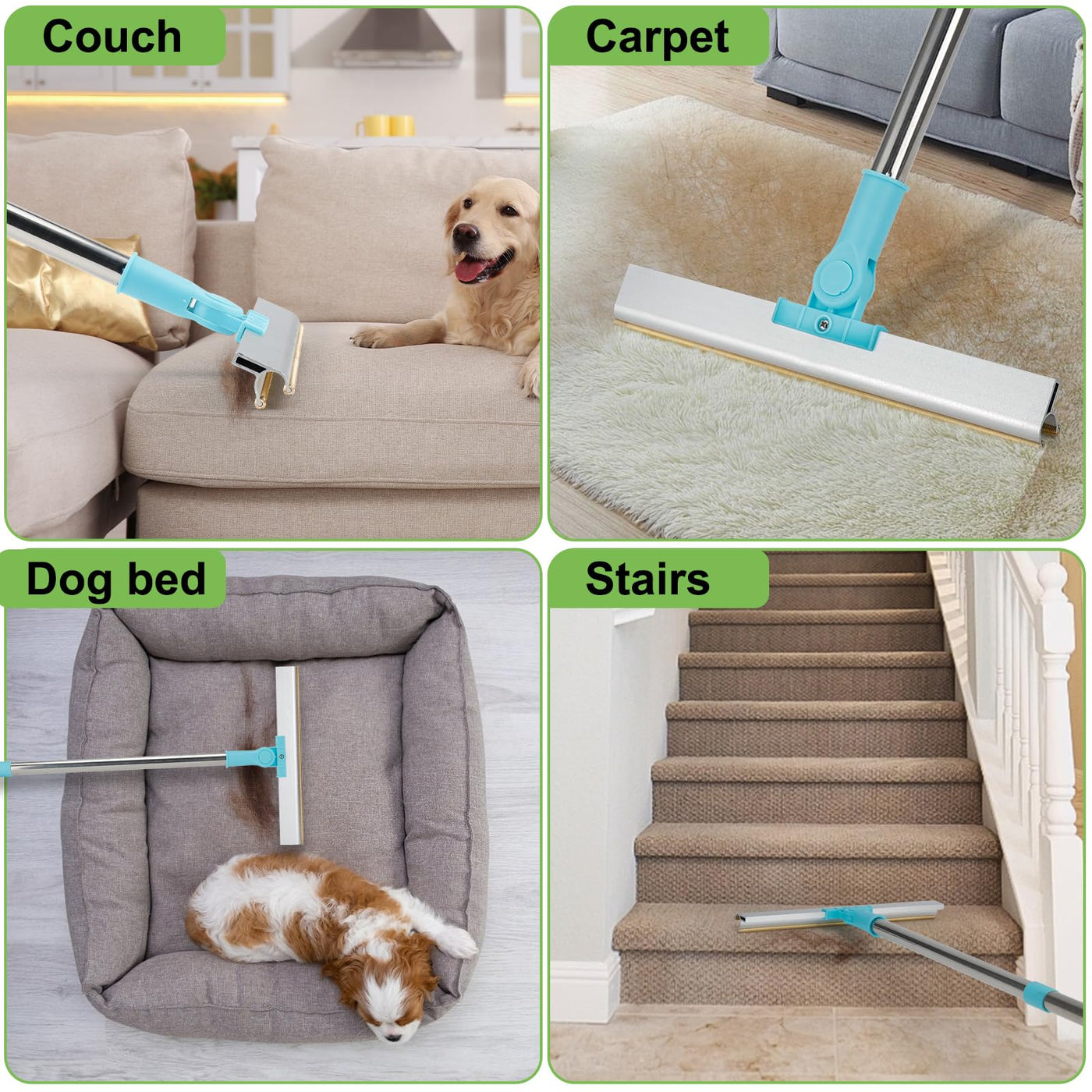 - Stand To Clean Pet Hair Removal Tool - Save your back from traditional short pet hair removal tool, our long handle carpet rake with 54 adjustable long handle, no more back pain. Special designed U-shape head edge helps to reach in fiber deep cleaning and gathering hair in few minutes, and also easy for you to push your force on the surface, just cleaning like breeze.