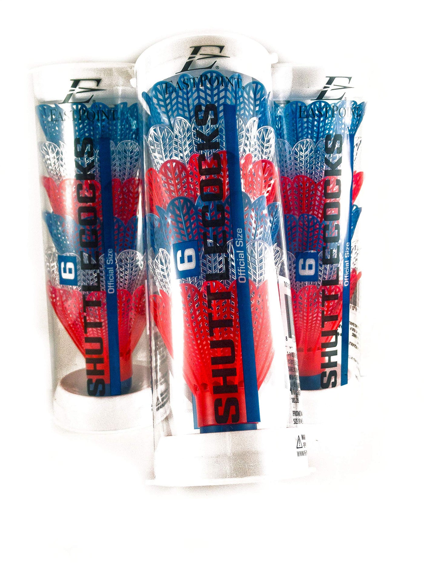 EastPoint Badminton Shuttlecocks for Badminton, 3 Containers (18Pcs) Red, White/Clear, Blue Indoor/Outdoor Birdies