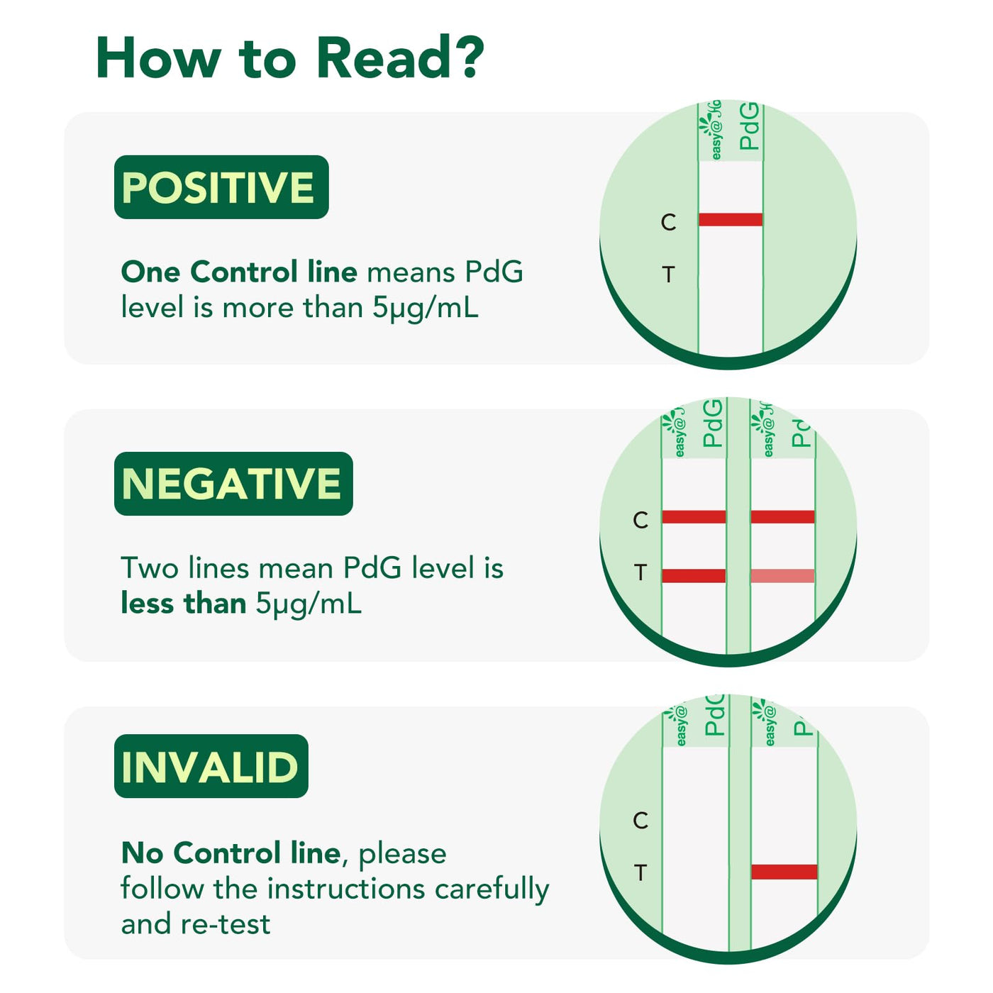 - Easy At-Home Testing: Dip the strip in first morning urine for 5-10 seconds, then read the results after 5-10 minutes. One control line means a positive PdG level (over 5g/mL), while two lines indicate a negative result. No complex tools needed-easy and straightforward results