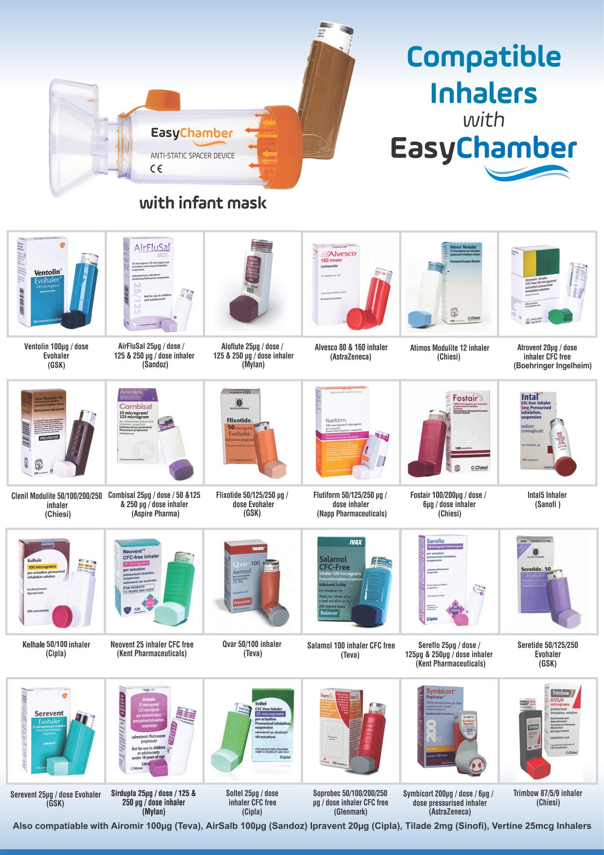 - Improves the delivery of Metered Dose Inhalers used with EasyChamber due to medication not adhering to chamber walls.