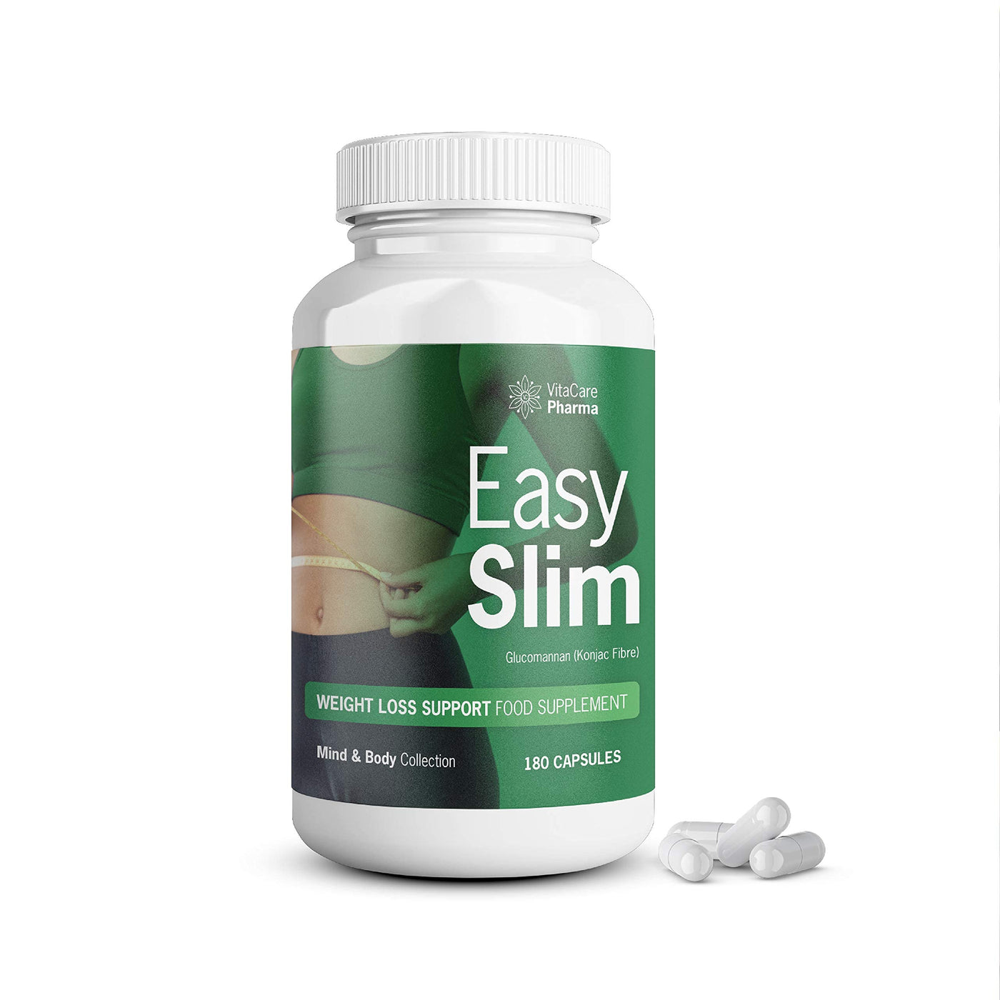 EasySlim Weight Loss Support for Men & Women | Glucomannan (Konjac Fibre) | Appetite Suppressant | Mind & Body Collection (1 Month Supply) 180 Count (Pack of 1)