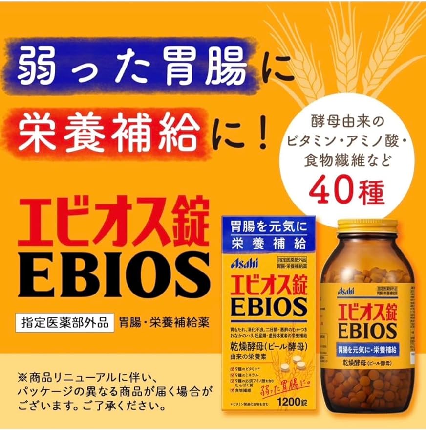 - Ebios tablets are made from dry yeast (brewer's yeast) derived from natural materials. It is a designated quasi-drug.