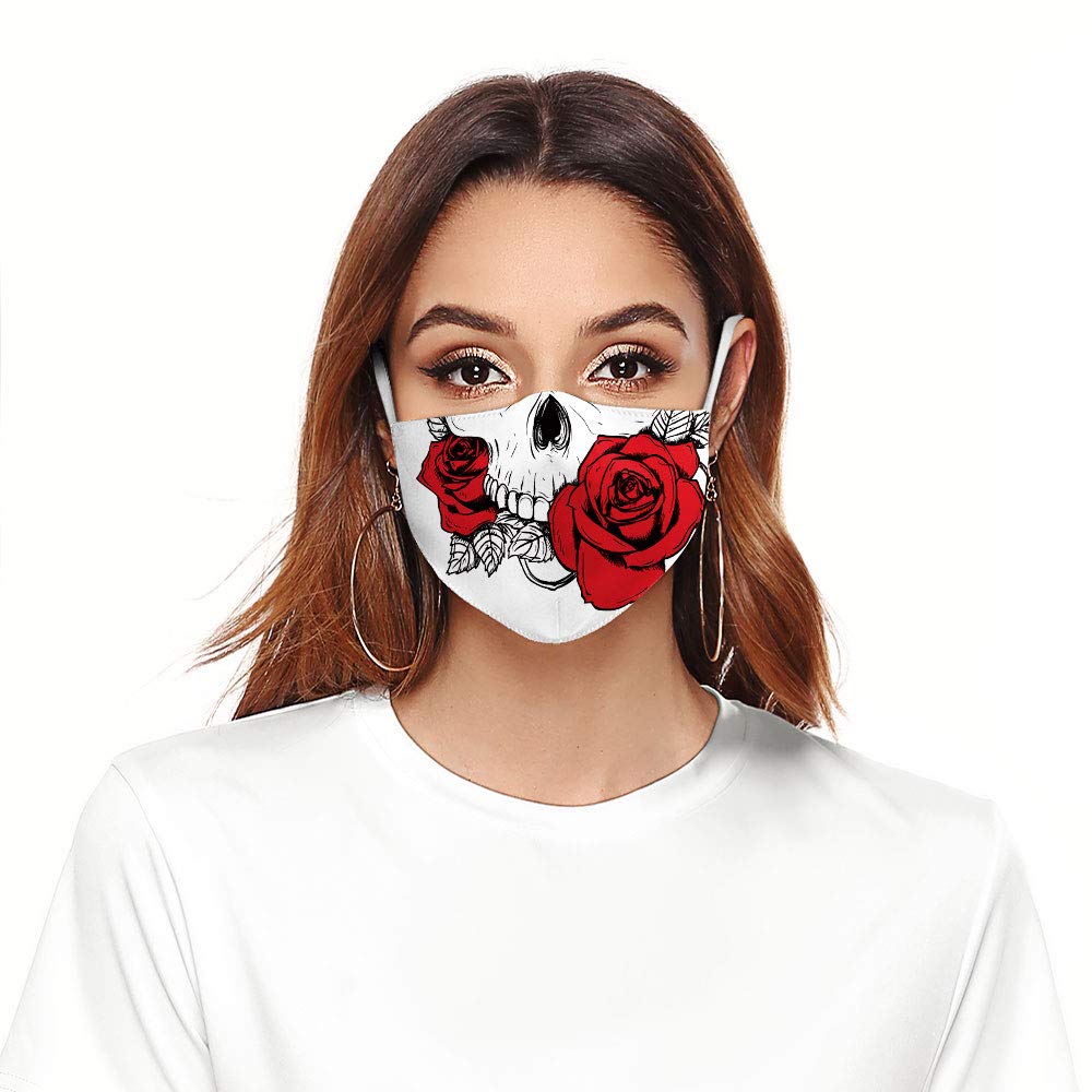 eBoutik -Spooky Face Coverings Face Mask Reusable - Washable & Breathable - Social Distancing Aid Rose Skull