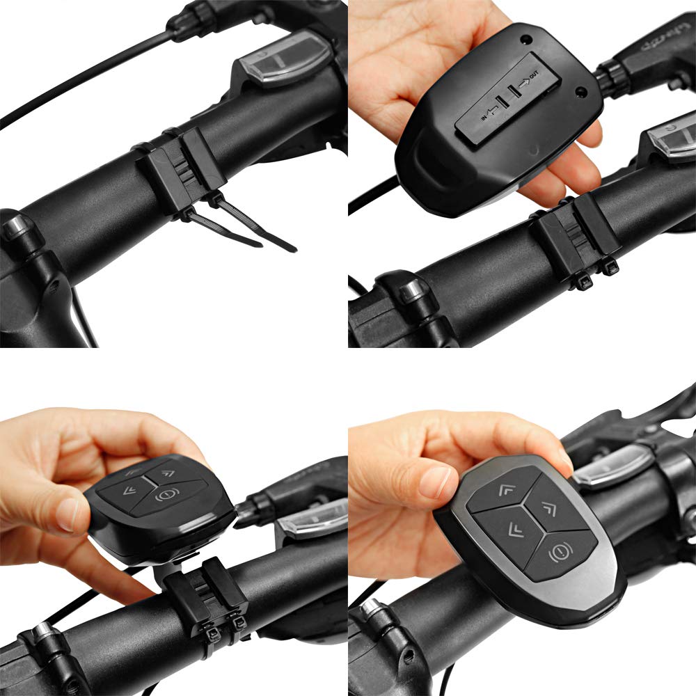 - DON'T LIFT THE ARMS: Avoid falling (especially on a scooter) by keeping your hands on the handlebars, thanks to the easy-to-install wireless remote control, which you can detach from the handlebars.
