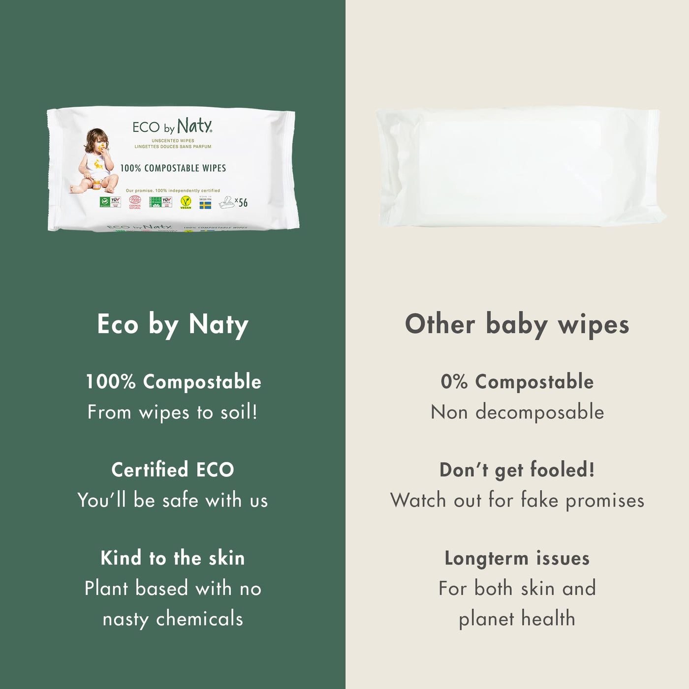 Eco by Naty Aloe Vera Baby Wipes, 672 count, Plant based Compostable Wipes, 0% plastic. No nasty chemicals, (Pack of 12) 56 Count (Pack of 12)