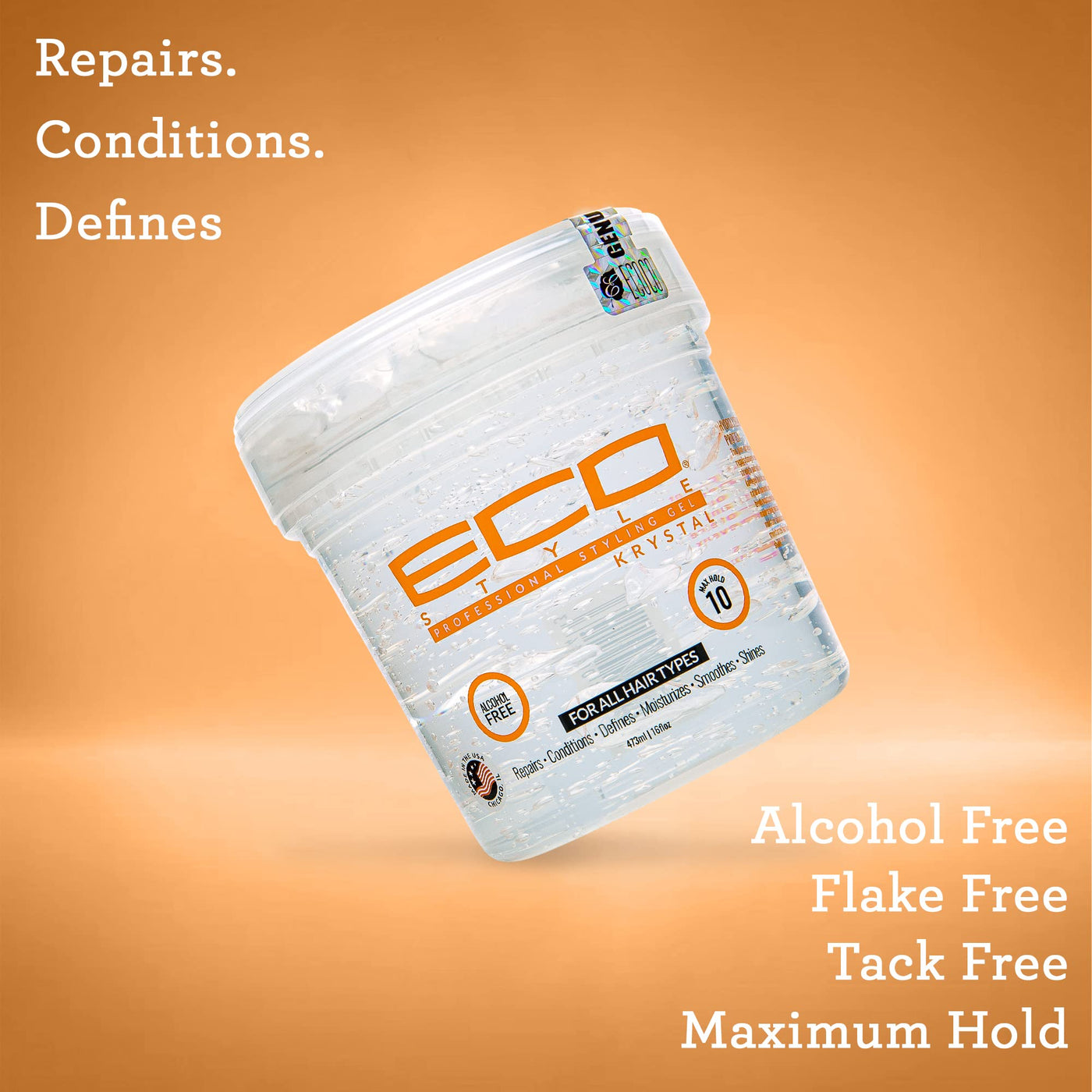 - Eco Style Krystal styling gel is a strong hair styling gel that is ideal for any hair type and colour