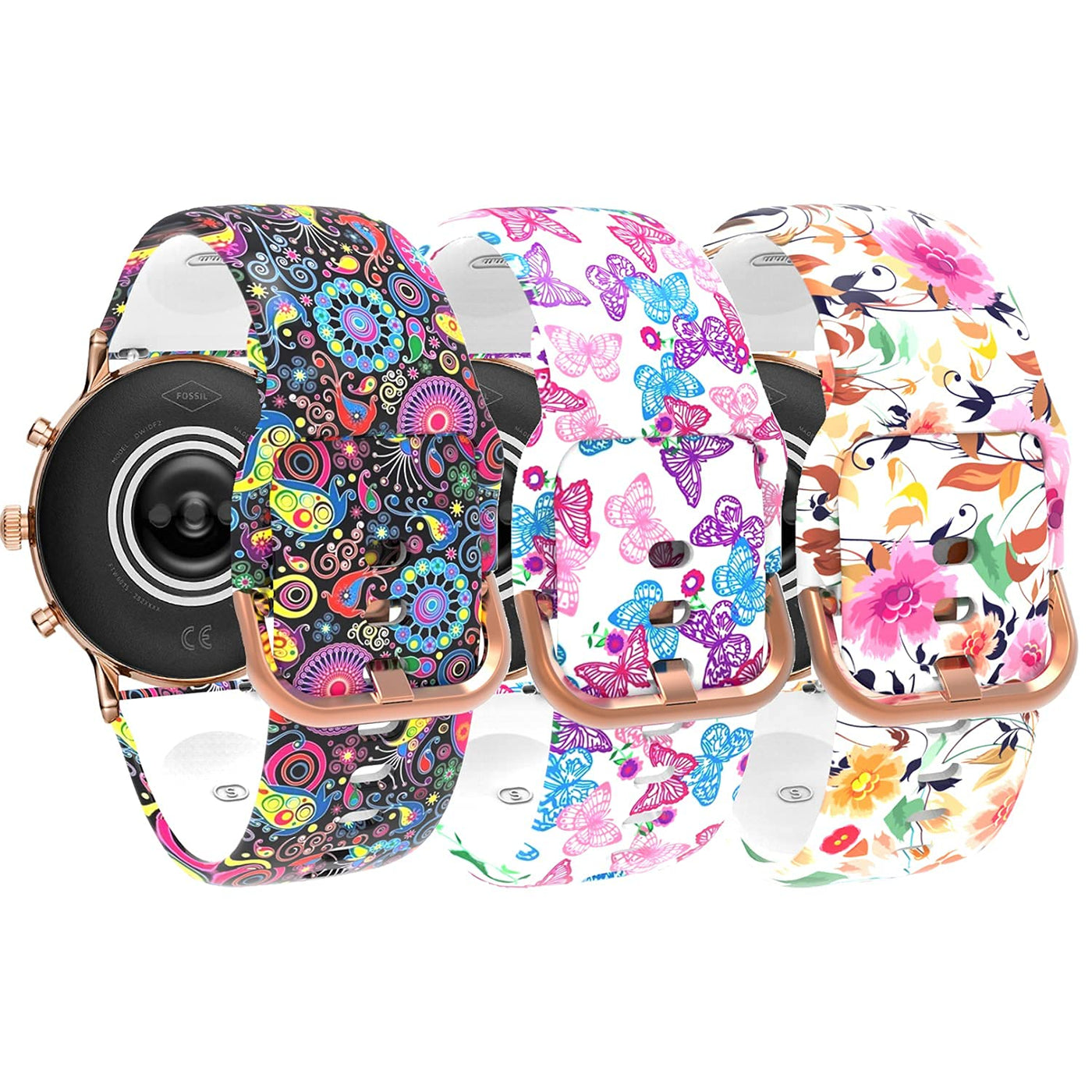 ECSEM Pattern Bands Compatible with Tinwoo T20W Smart Watch Band Adjustable Replacement Wristbands Soft Silicone Sport Strap for T20W 3PCS#2