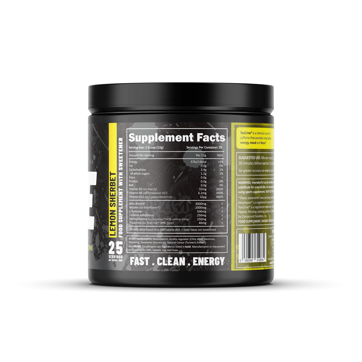 Efectiv Nutrition The Edge Pre Workout 300g | Beta Alanine | Caffeine | Dynamine | Teacrine | Helps Provide Fast Clean Energy and Focus | 25 Servings (Lemon Sherbert) Lemon Sherbert