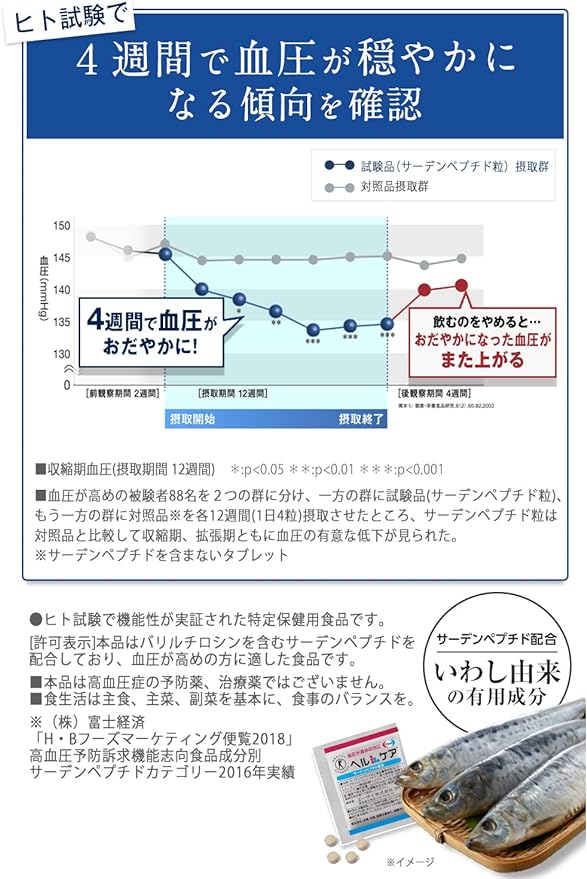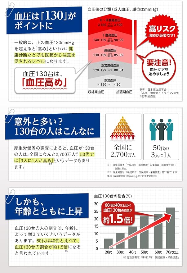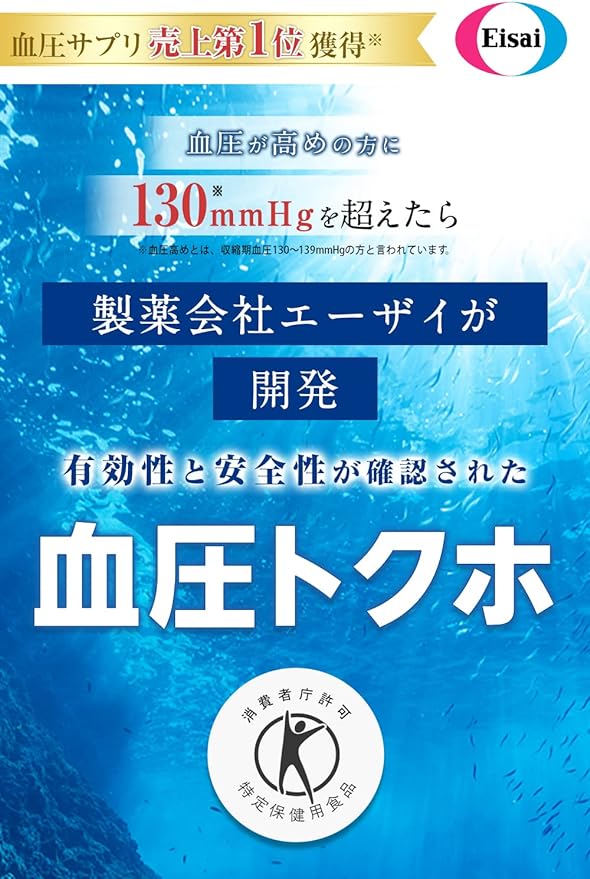 • Developed by Eisai Pharmaceutical Company: Health care for those with high blood pressure (130–139 mmHg).A supplement recommended by the Japan Society of Ningen Dock. li>