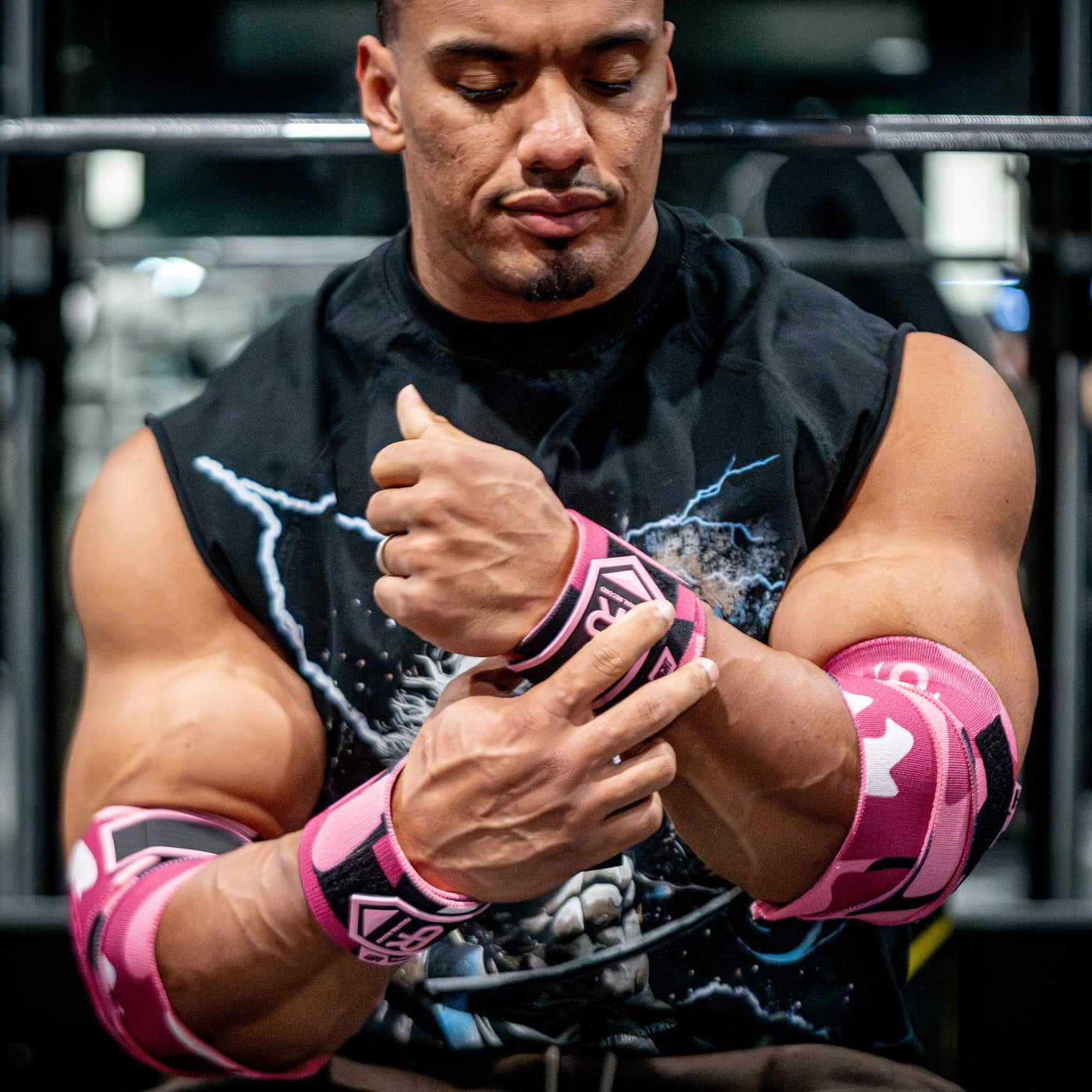 Elbow Wraps for Weightlifting - Heavy Duty Construction, 25% More Elasticity, Reinforced Stitching, Extra Wide Fastener, Easy to Adjust, (Digital Pink)