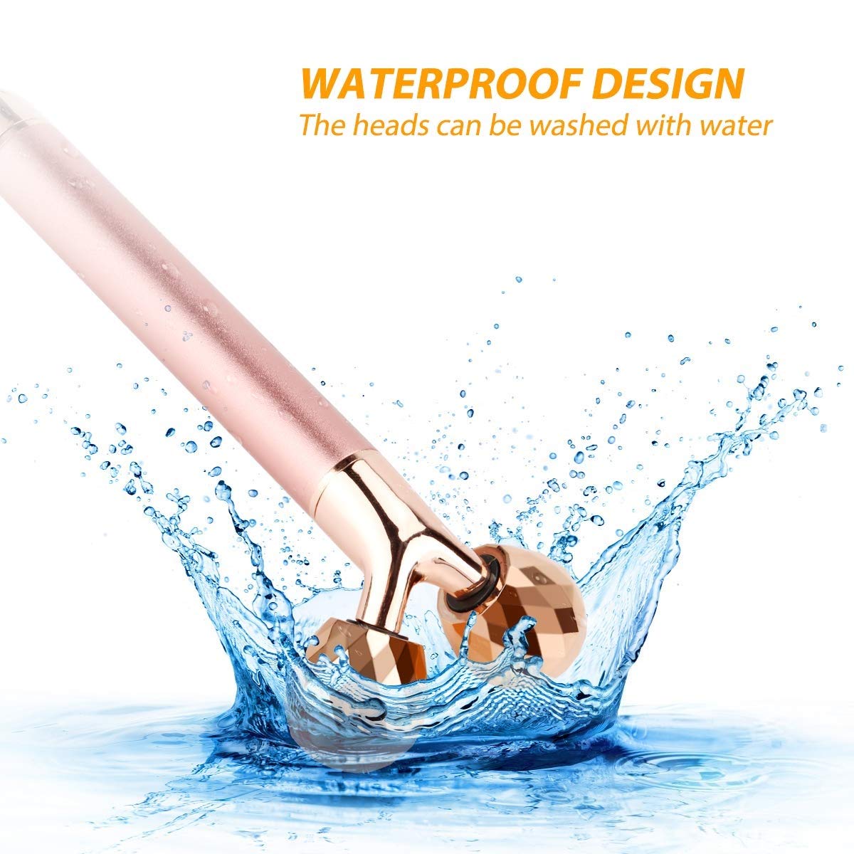 Electric Jade Roller Face Massager,3-in-1,100% Natural Rose Quartz Facial Roller Kit,Skin Care Beauty Roller Tool for Anti-Aging,Anti-Wrinkle,Skin Tightening,Chin Toning Roller,Oil Serum,Rose Gold