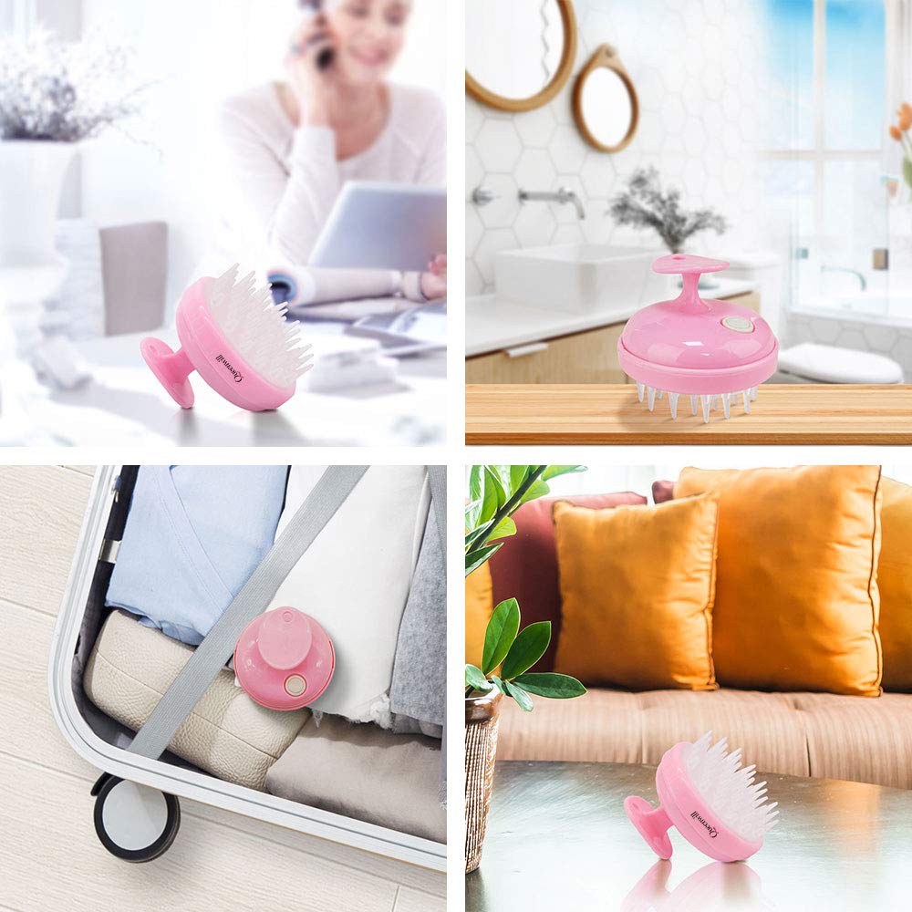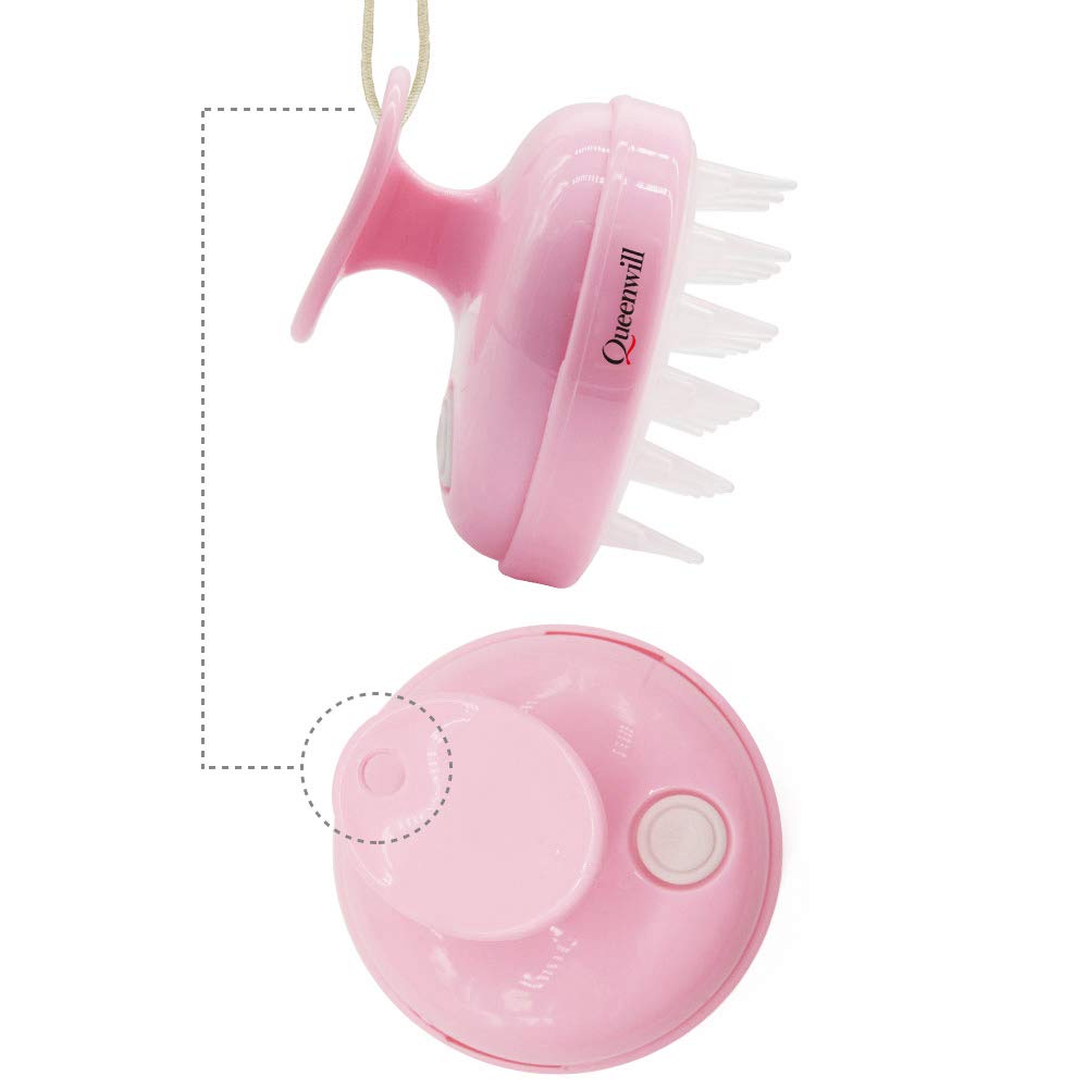 Electric Scalp Massager for Hair Growth, Queenwill Head Massager Shampoo Brush for Deep Hair Cleaning and Head Blood Circulation, Battery Powered & Waterproof - Pink, Gift for Your Family and Friend