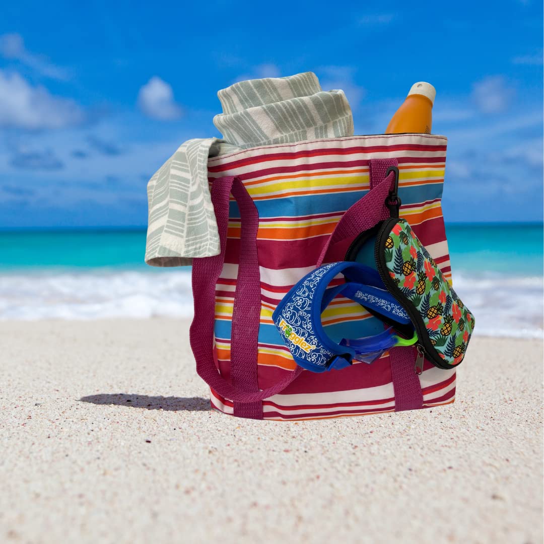 • PROTECT AND CARRY. Frogglez neoprene goggles case keeps goggles safe and easy to carry. Zippered pouch holds goggles or sunglasses. Attaches to beach/pool bag