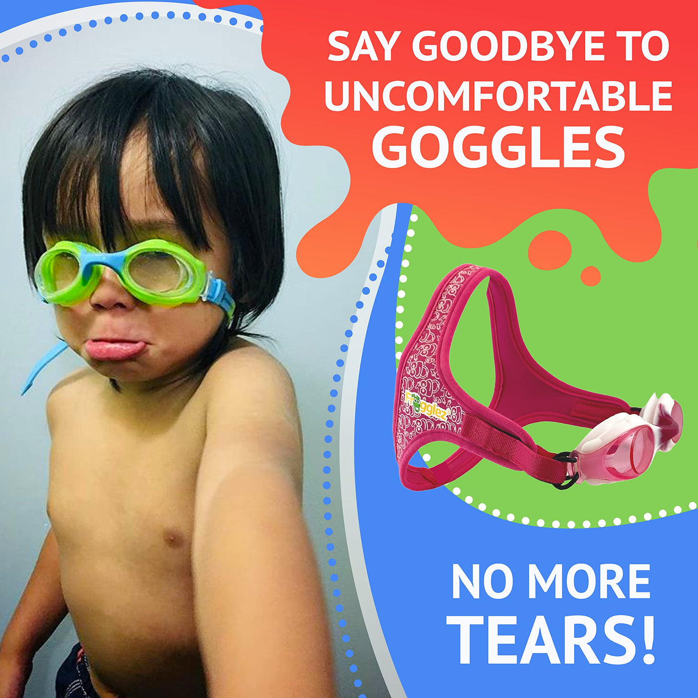 • NO HAIR PULLING, NO SQUISHED eyes or ears. Swim goggles that are best for kids' comfort. Soft fabric-covered neoprene glides right over long and curly hair without tangling; these stay exactly where you want them.