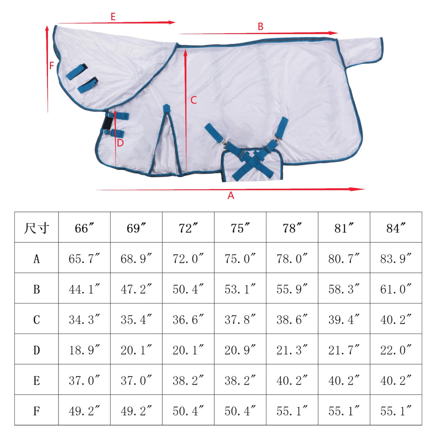 This soft & durable polyester mesh fly sheet protects your horses from the sun and keeps horses cool and comfortable. The detach-a-neck offers full protection to your horse's neck. An extra tail flap gives greater protection. The traditional side gussets allow for unrestricted movement in the shoulder area &help protect against rubs, two adjustable buckles with Velcro closure allow for easy on & off. The adjustable belly band covers the horse's belly to provide full protection. This is a must-have fly sheet for your horse in the hot season.