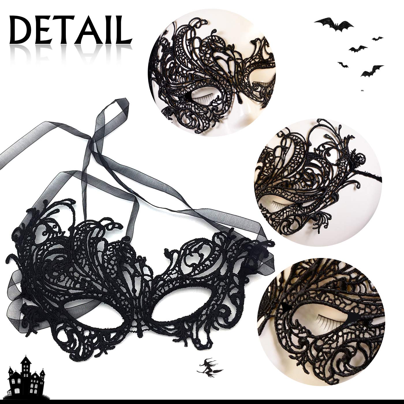 Kaliosy Halloween Masquerade Mask Lace Luxury Sexy Half Veil Eye Masks, Party Cosplay Venetian Mask Carnival Night Club Masks Ball Prom Wedding for Girls Women Decoration