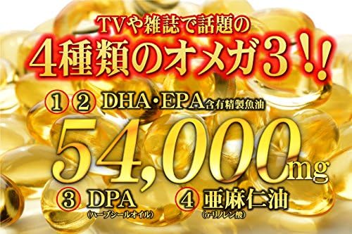 - Please compare★ [Confident in the amount of ingredients! ] Contains 4 types of omega 3, DHA + EPA + DPA + α-linolenic acid (linseed oil). Contains 300mg of DHA + EPA purified fish oil in one tablet! One bag has a whopping 54,000mg