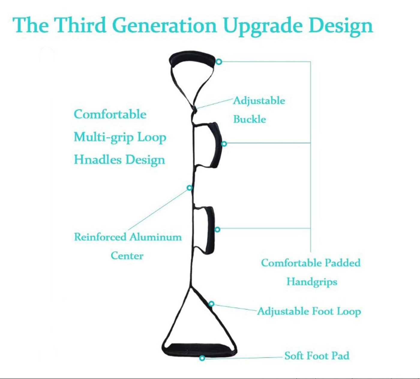 - Upgrade DesignWe added a sponge cover to the handle grip positions, and a soft foot pad is added to the foot loop position. Built with a comfortable hand loop and large foothold for securely re-positioning your leg with ease.