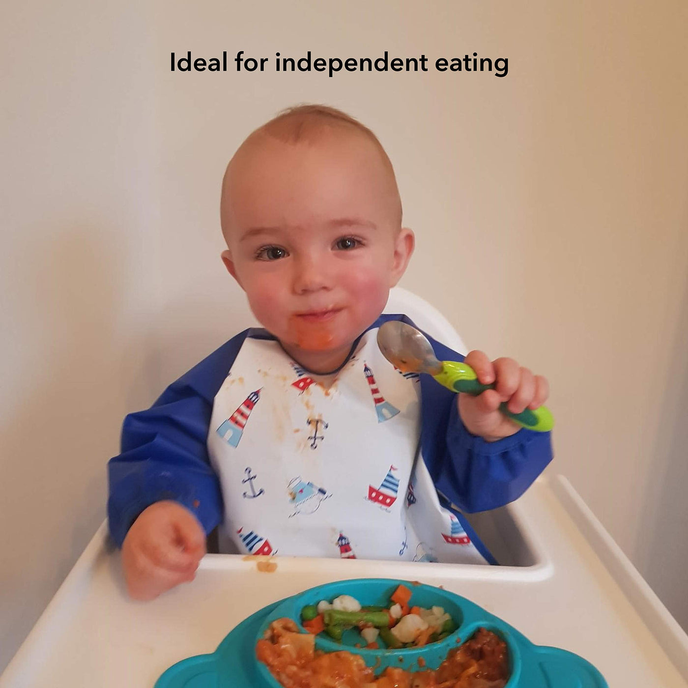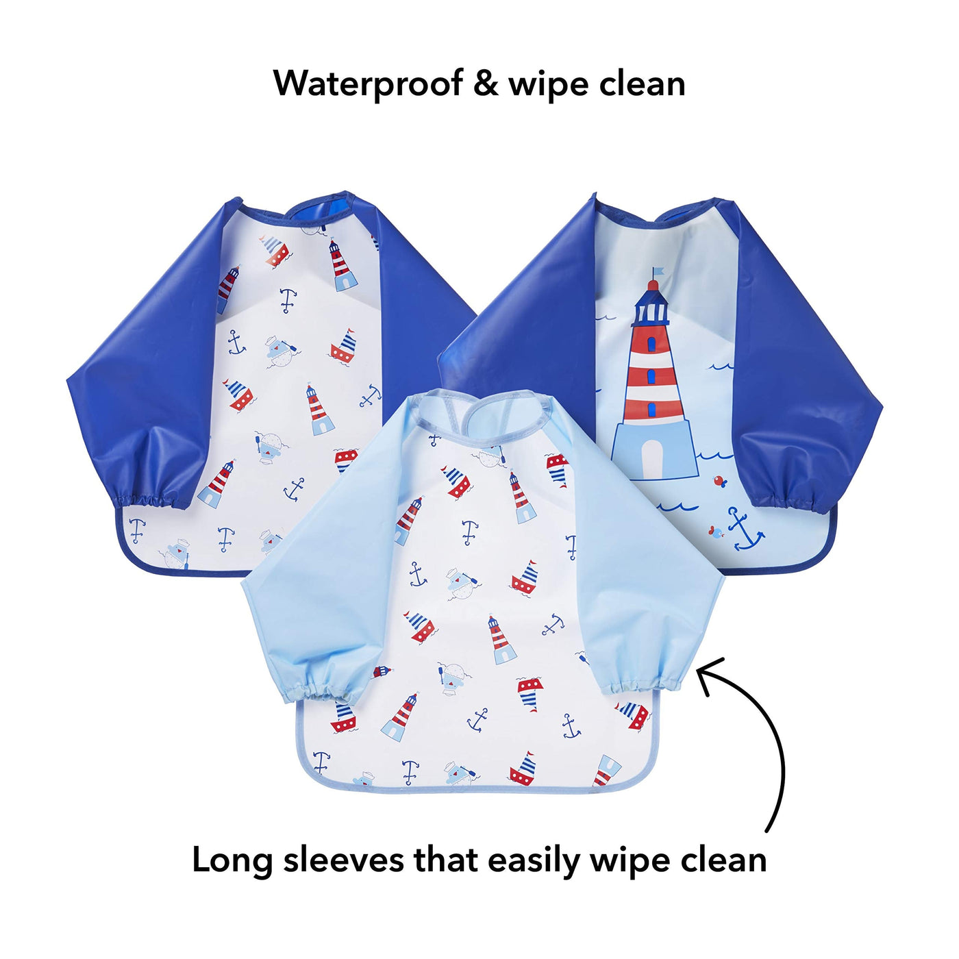 Nuby Coverall Baby Bibs for Toddlers 12 months plus, Long Sleeve Waterproof Weaning Bibs, 3 Pack, Blue Boy
