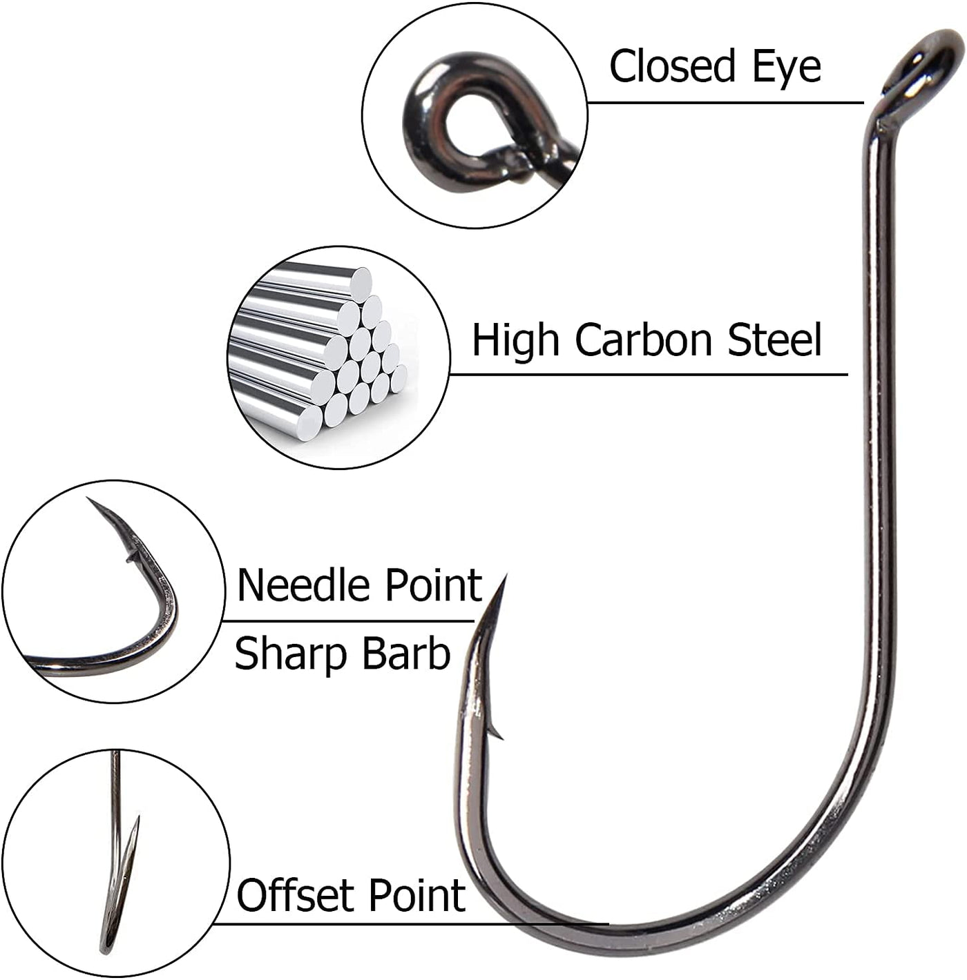 - SHARP: Ultra point technology make sure hook sharp for perfect penetration. Offset point, special barb hooks for reduce the chance of missing fish