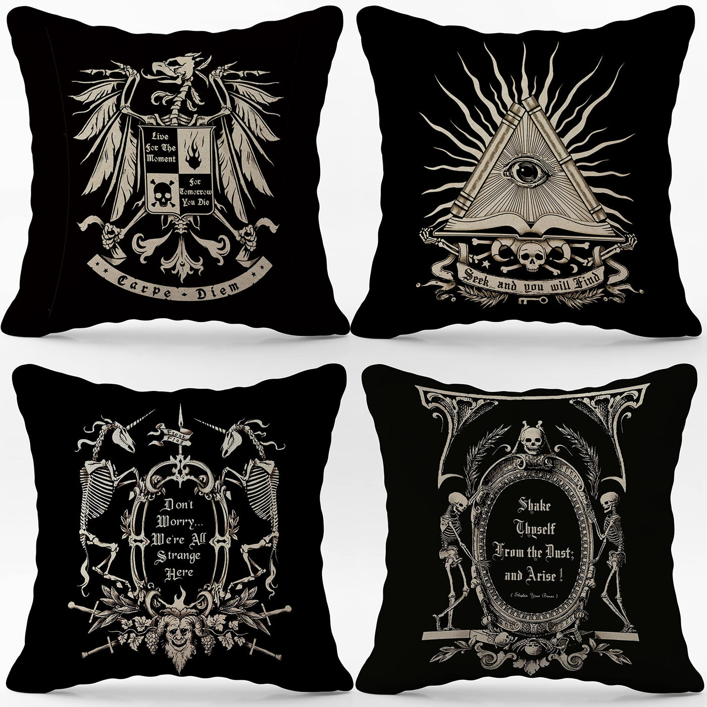(RB) Dark Memento Mori The Undead Gothic Macabre Art Throw Pillow Case,18 x 18 Inch Set of 4,Gothic Home Decor, Gifts Wife, Sister, Husband, Gothic Lover, Gothic Pillows Cover for Sofa Couch Bed