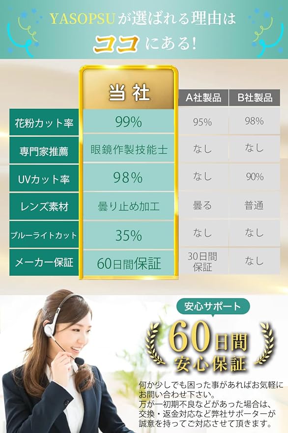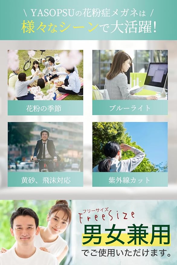 (Recommended by Eyeglass Manufacturing Technicians) Hay Fever Glasses, Anti-Fog, Wellington-Shaped Pollen Glasses, Stylish, Anti-Fog, Blue Light Cut, Women's, Men's, Splash, Pollen Prevention