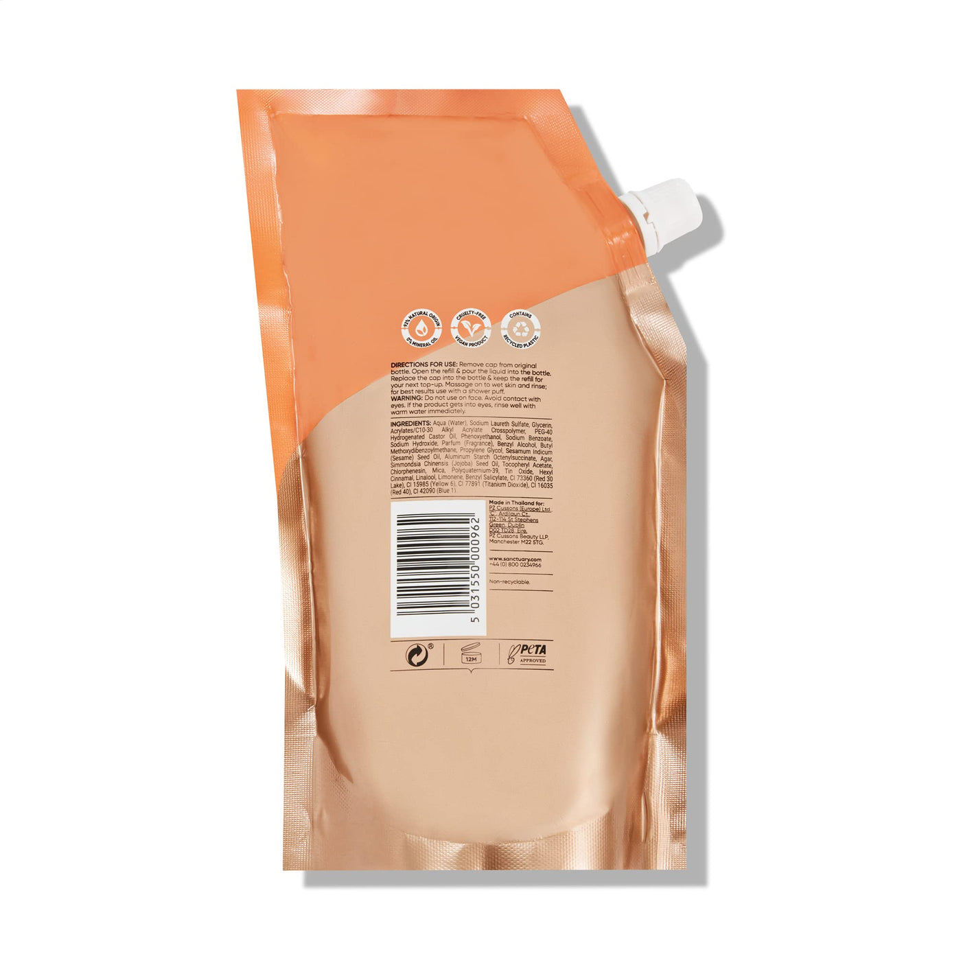 Sanctuary Spa Shower Gel Refill Pouch, No Mineral Oil, Cruelty Free, Natural & Vegan Body Wash for Women, 500ml, Orange
