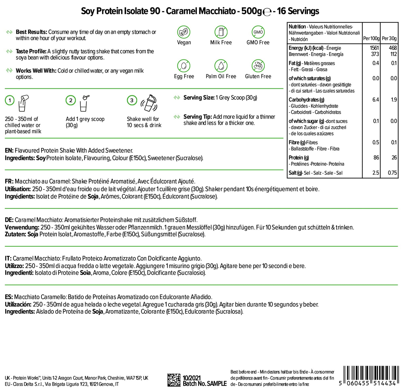 Soy Protein 90 (Isolate) Protein Powder | 100% Plant-Based | Low Fat | No Added Sugar | Gluten-Free | Protein Works | Caramel Macchiato | 500 g
