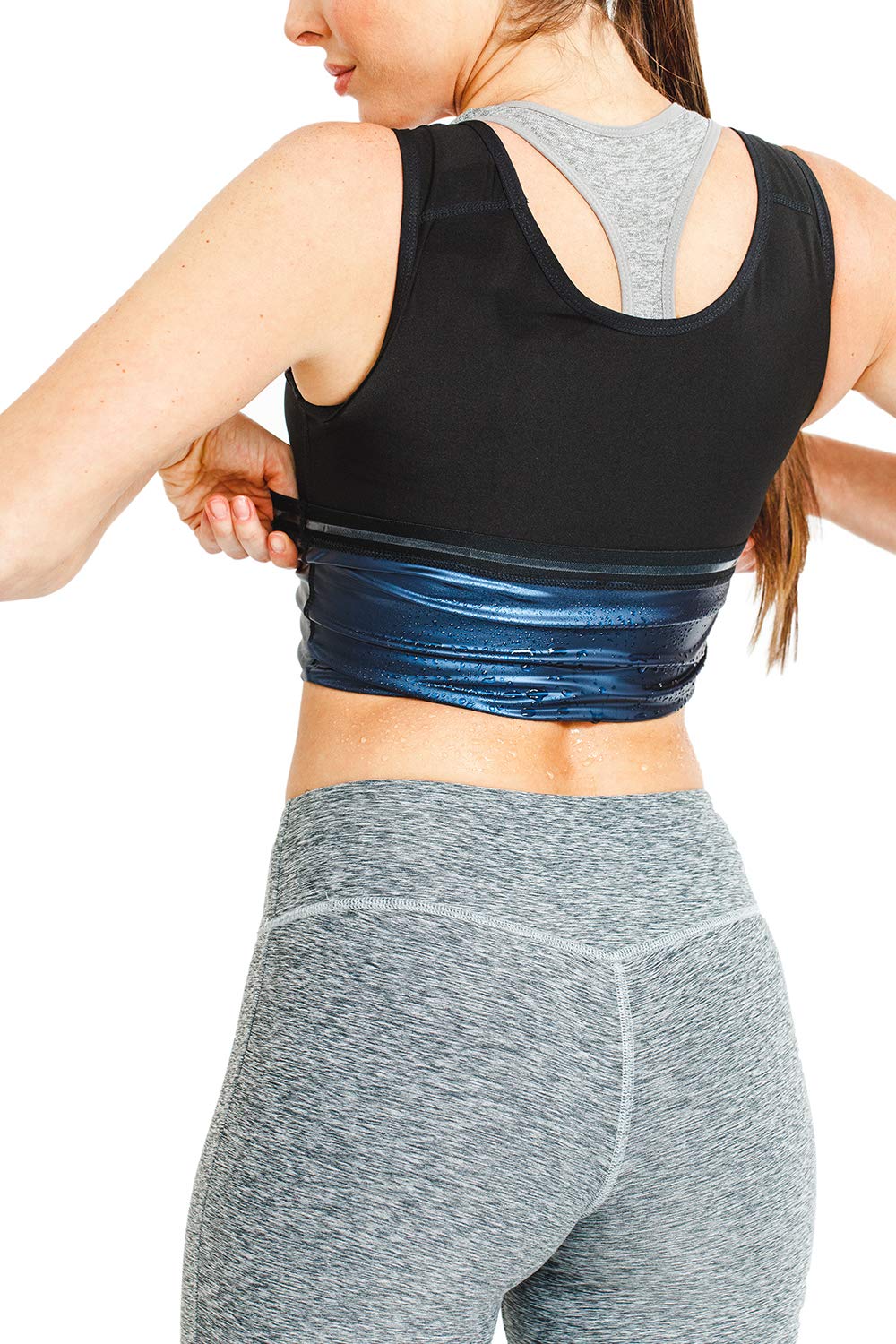- COMFORT & VERSATILITY: Sweat Shaper has been designed so that it's incredibly light and comfortable to wear even for extended periods. It molds and moves with your body during workouts at the gym or running errands. Exceptionally flexible, featuring a traditional tank top style backing and low-cut bust support at the front so you can comfortably wear a sports bra underneath. The polymer material repels moisture to quickly dry and stay fresh to not feel wet from the excess sweating.